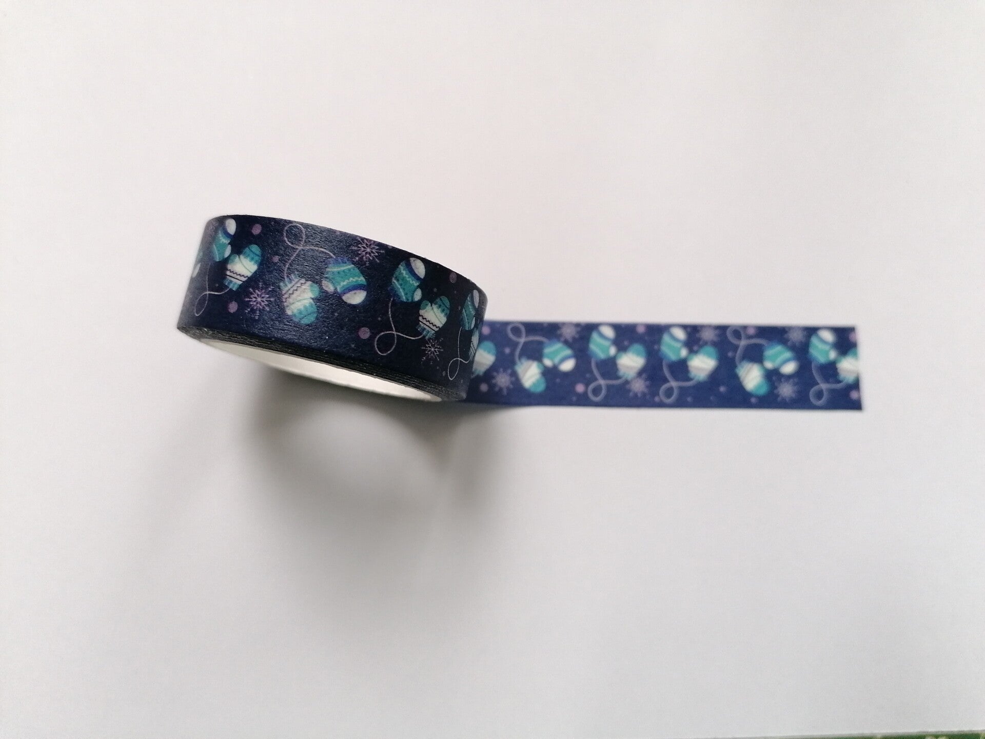 Washi Tape blau mit Fäustlingen und Schneesternen