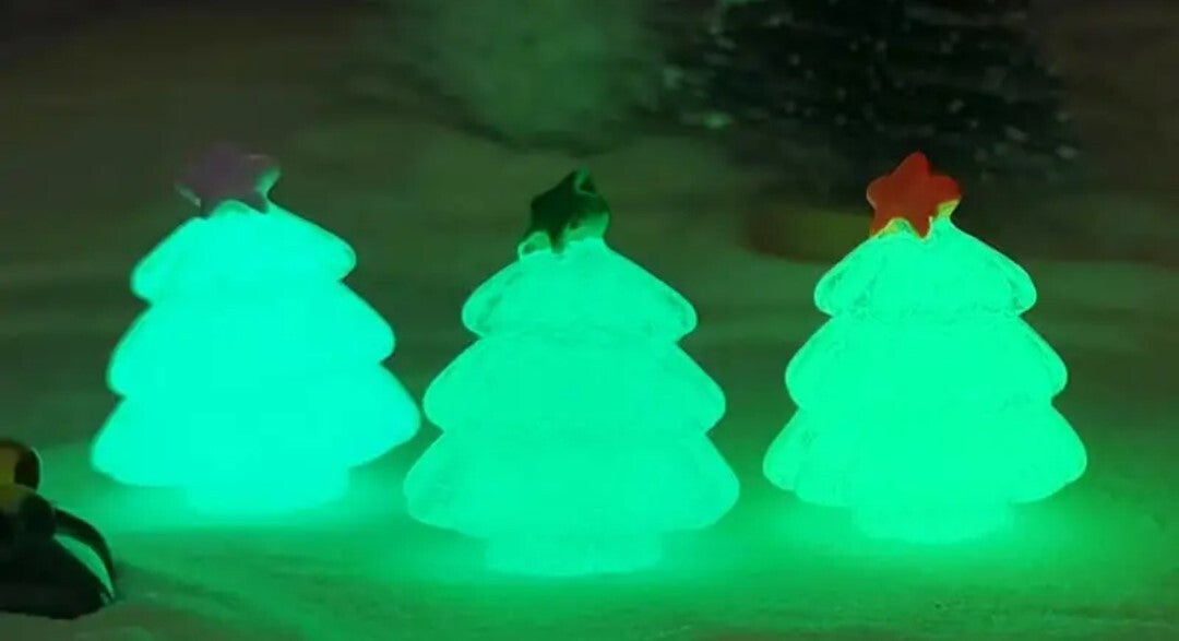 Kleine Tannenbäume, die im Dunkeln leuchten.