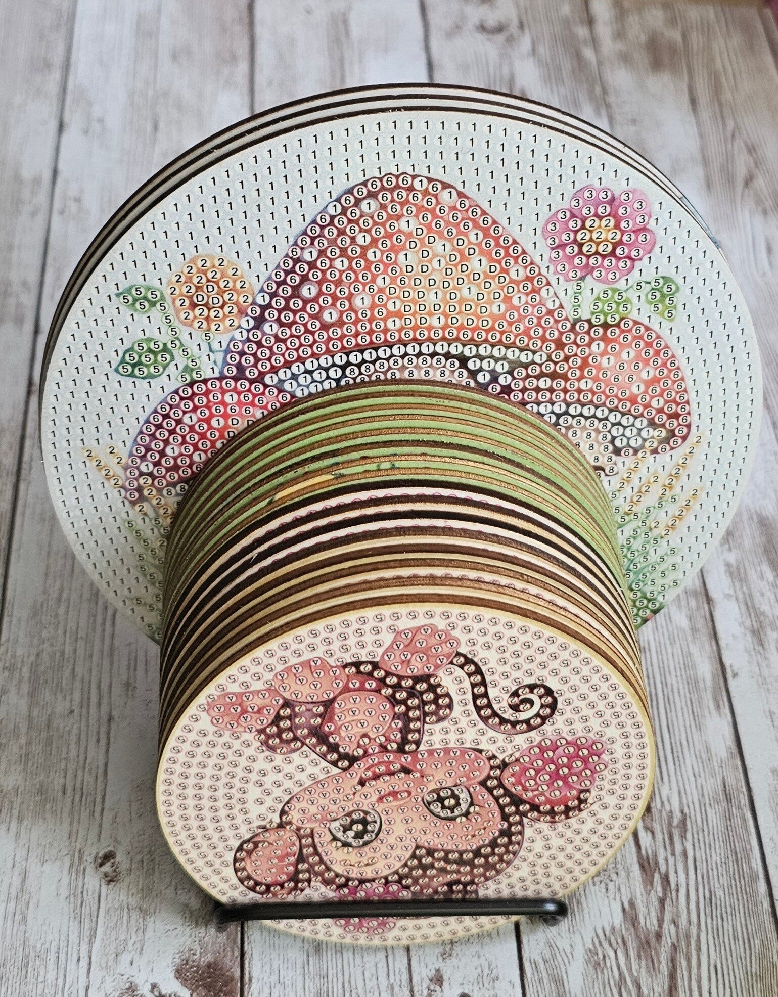 Endlich habe ich, nach langem Ausprobieren, eine gute Lösung für alle Untersetzer ohne Aufsteller gefunden. Egal ob es Untersetzer für Getränke oder Töpfe sind. Beides passt perfekt.