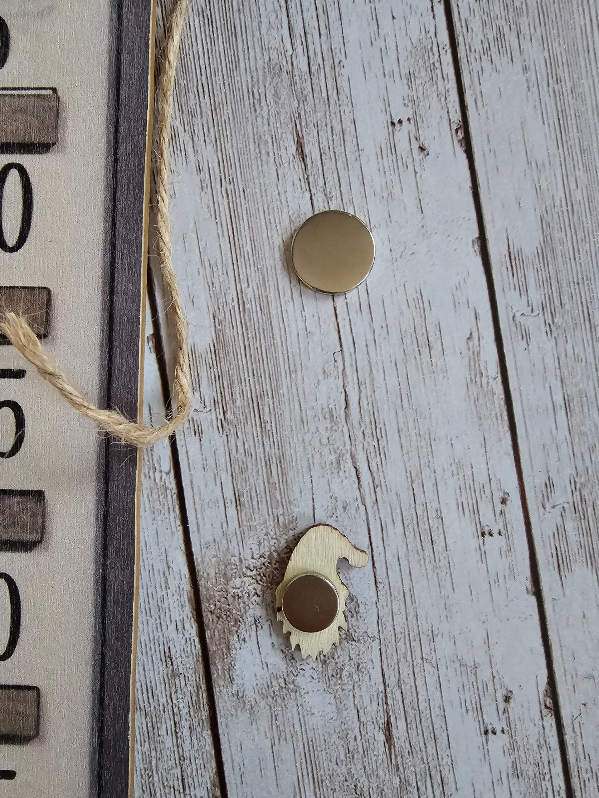 Damit der kleine Gnom ordentlich über das Schild hüpfen kann, habe ich ihn mit einem Magneten versehen, welcher mit einem großen Magneten verbunden ist.
